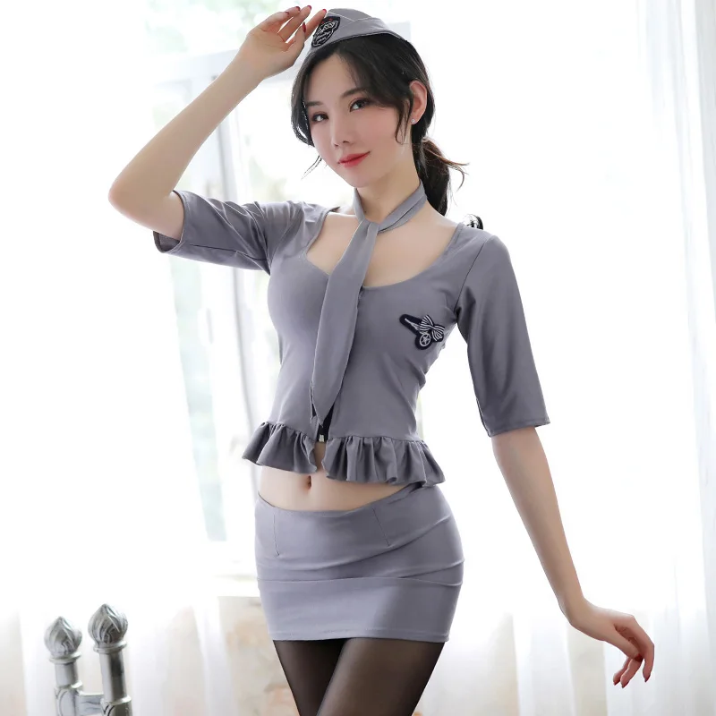 Special Chance of Oncecrazy Sexy Cosplay Flight Attendant Uniform sexy lingerie chest zipper temptation passion suit
