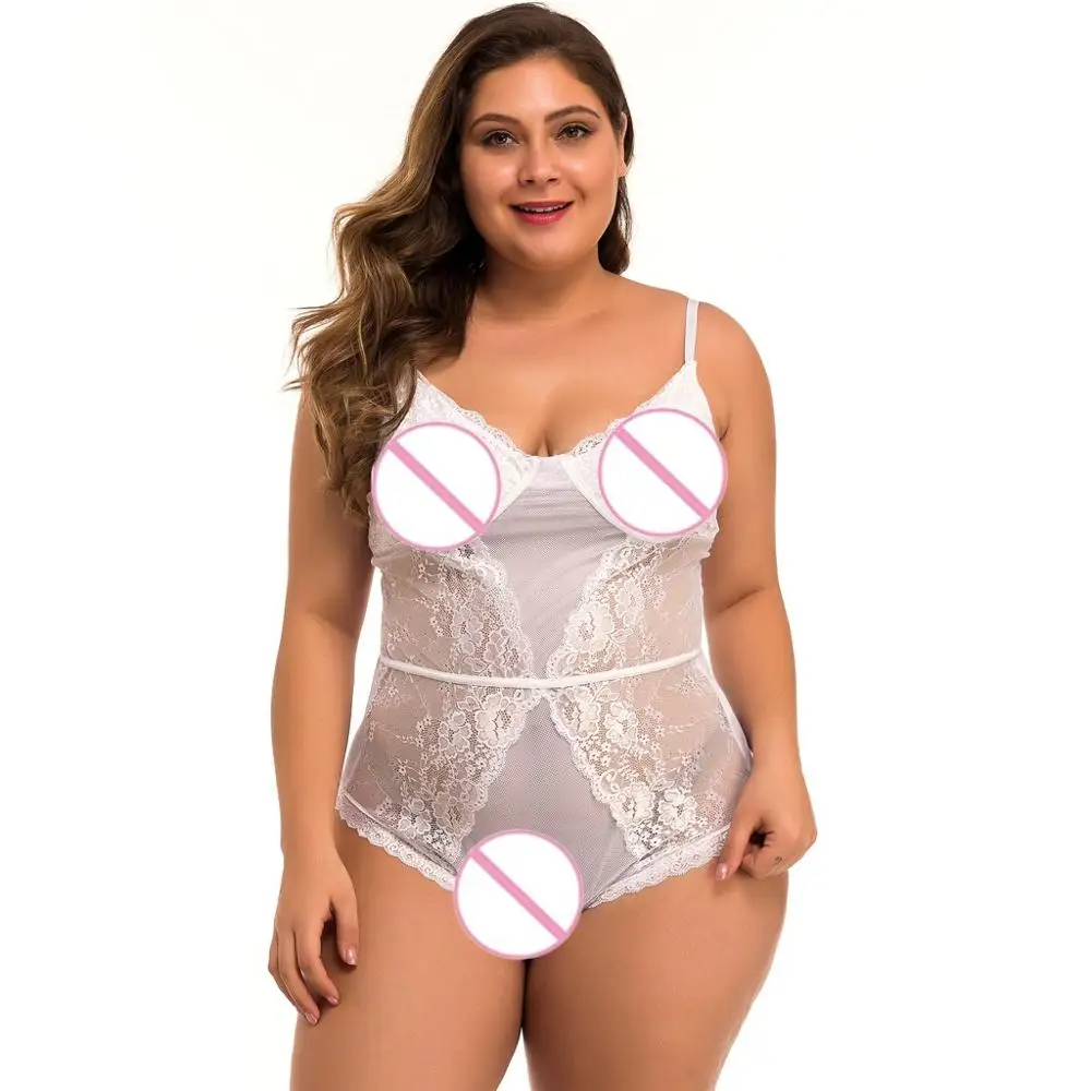 Special Chance for bodystocking body sexy New One Piece Women Plus Size Mesh Lace V-Neck Teddy Lingerie Jumpsuit Under